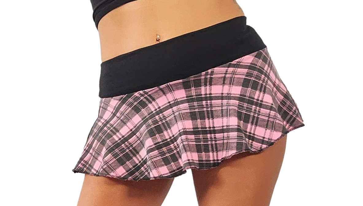 Mini Colegiala Escocesa, confeccionada en Microfibra de lycra Elastizada, estampado escoces rojo con negro, con cintura de lycra Modal Negra, la podes llevar tal cual la luce la modelo como tambien con calzas debajo, es una prenda que la podes utilizar como fantasia como prenda de calle superpuesta y version teens.