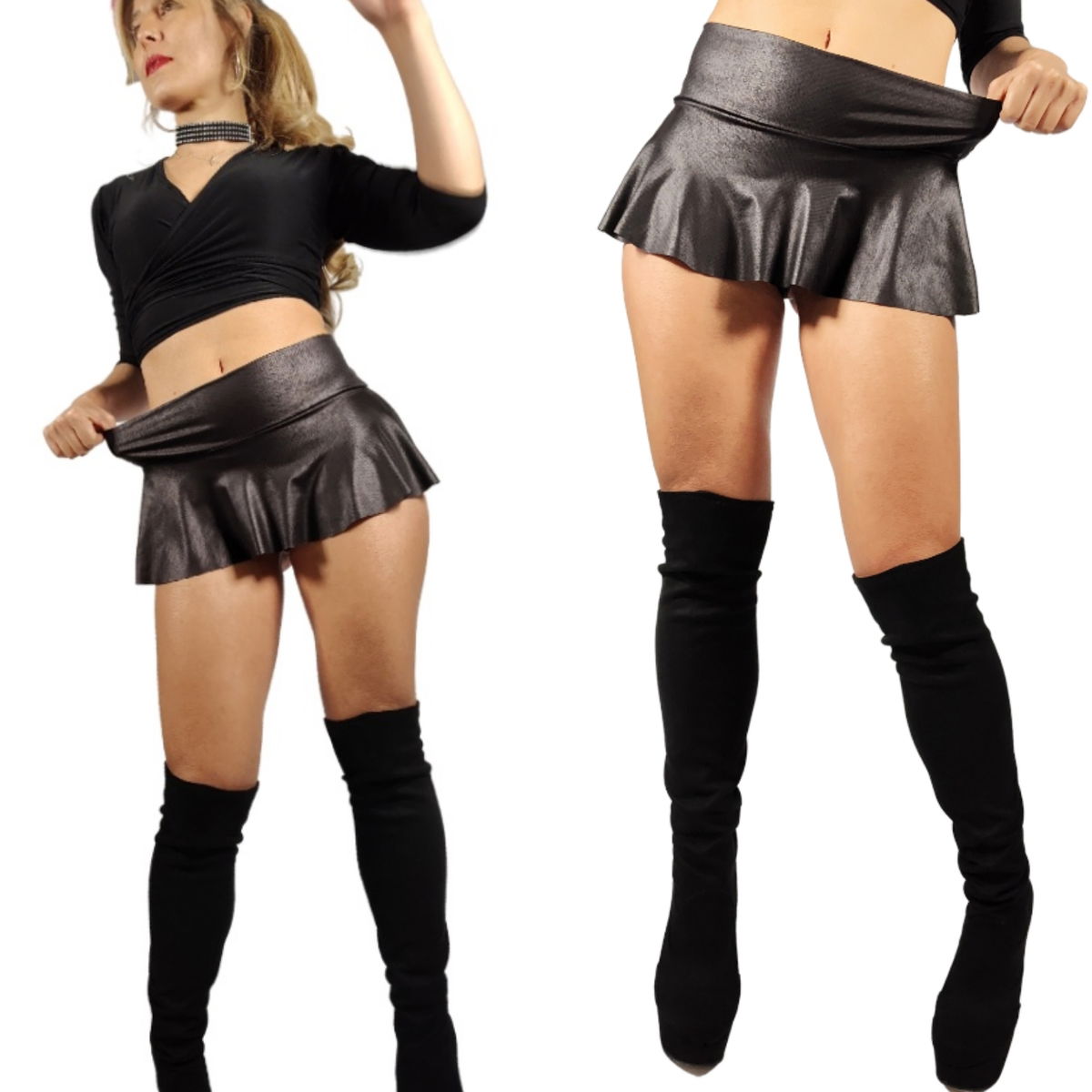 Hermosa Micro mini modelo plato, confeccionada en engomado alto brillo elastizada, tal cual la podés ver en cada una de las imágenes, es una de nuestra prendas denominadas Temáticas ( dado que se usan preferentemente, para vestuarios de shows, acompañar ropa interior en algún momento íntimo y divertido también la podés axesar alguna calza y darle realze a la misma, el uso de lo das vos!